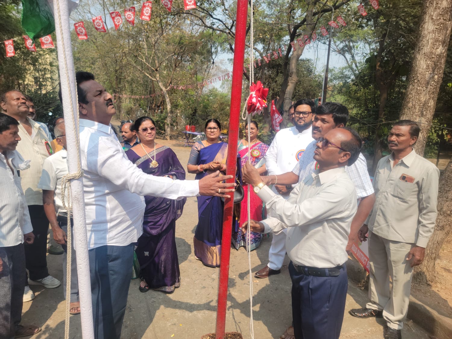 NFTE Flag hosted at RTTC Hyderabad on 03.02.2017. Com. Suresh, Com. I.Satyanarayana District Secretary, Circle Office, organised the Flag hosting ceremony at RTTC. Com. T.Narender, Telangana Circle President, Com. A.Rajamouli, Tetangana Circle Secretary and Coms of circle office attended the Flag hosting ceremony.