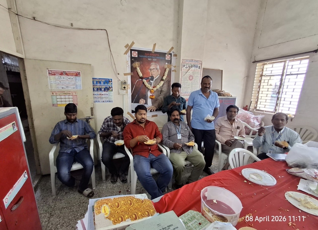 General Secretary and Com. A. Rajamouli went to Com. R.K. Kohli’s residence and enquired about his health condition. He is quite well and expressed his desire to nominate him in designation committee and internal wage committee. G.S. assured positively.