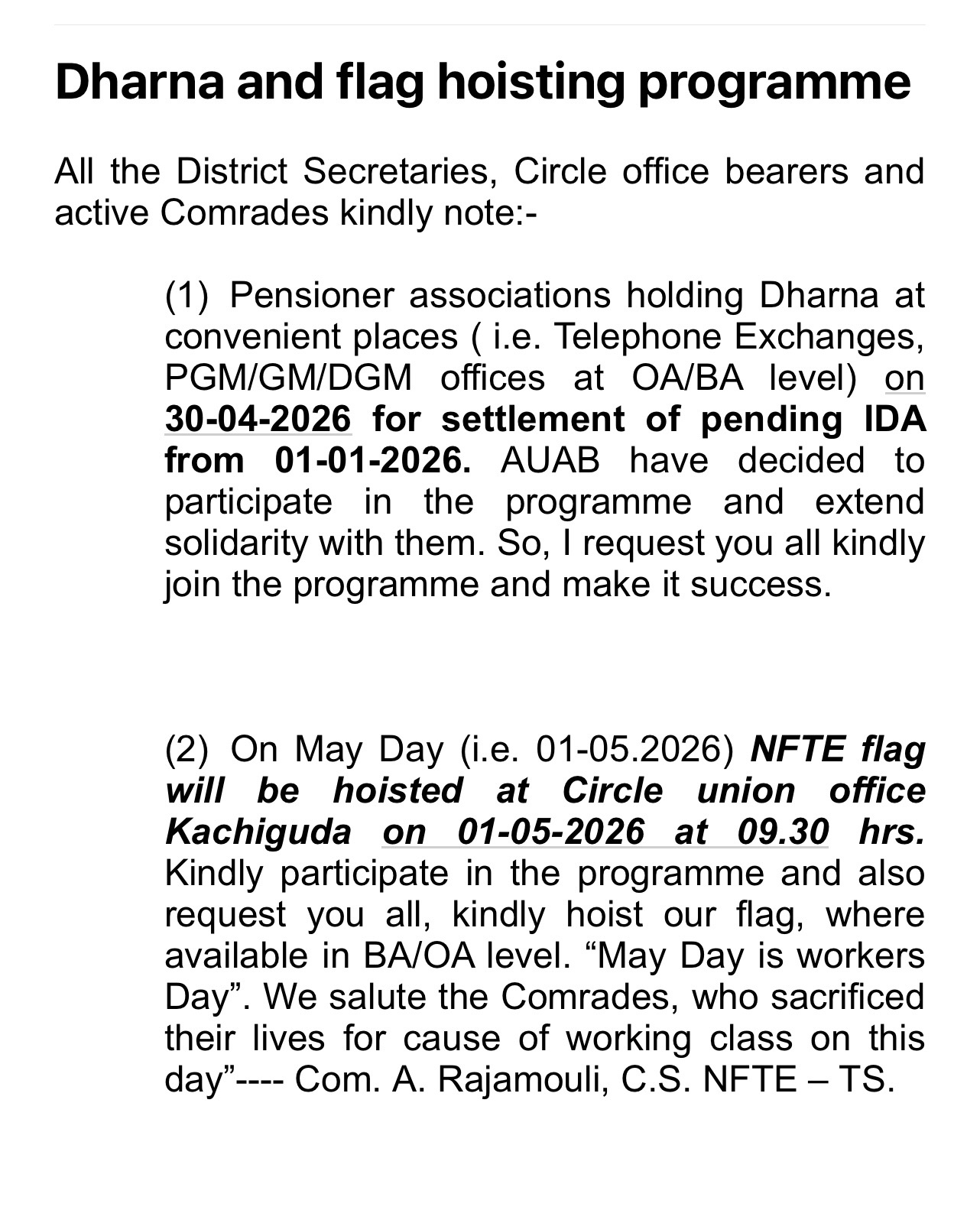 Secritary : A.Rajamouli